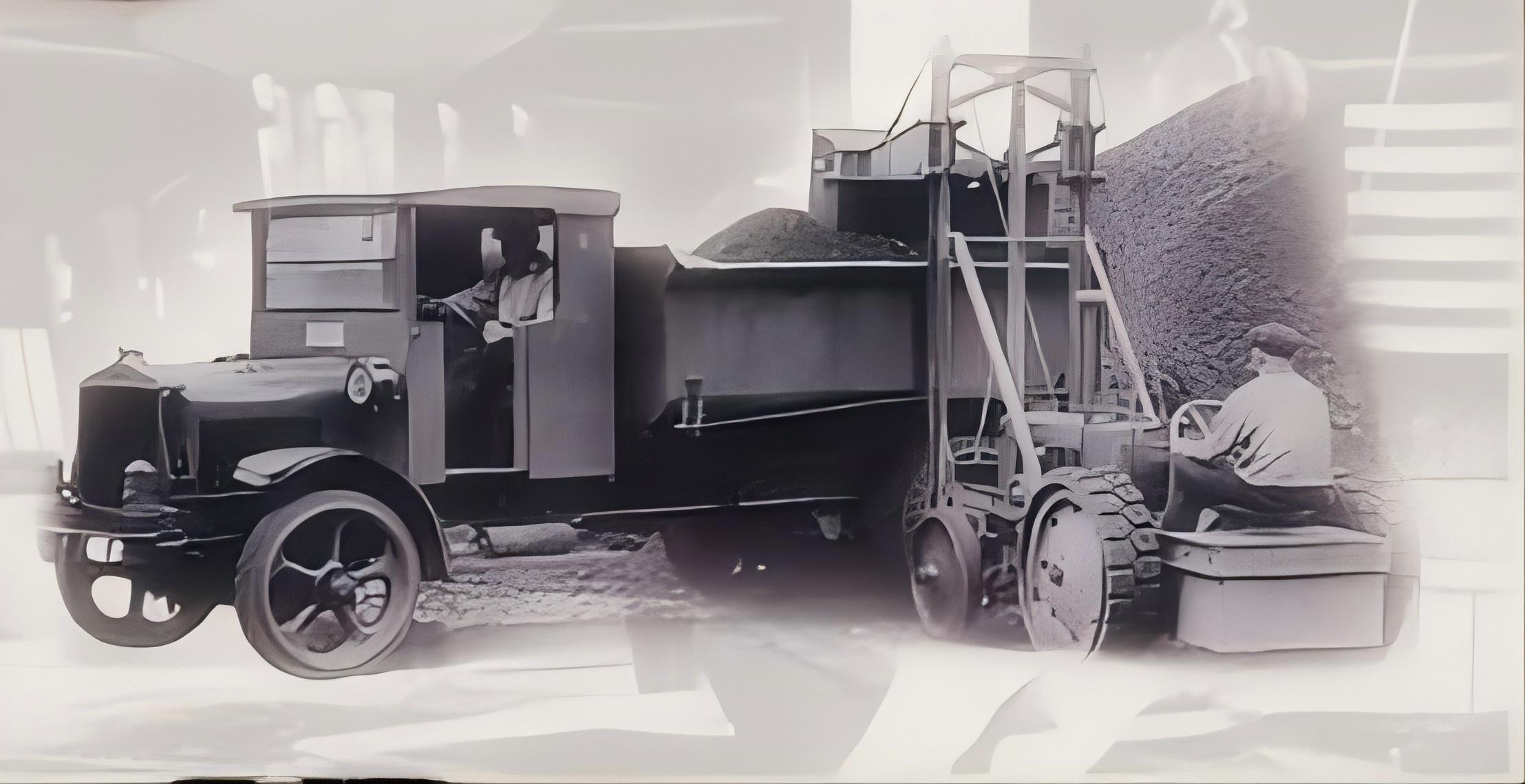 Vuonna 1929 syntyi maailman ensimmäinen pyöräkuormaaja. Tämä laite, joka perustuu modifioituun traktorin runkoon, omaksuu portirakenteen ja teräsköysauhan suunnittelun, jonka ämpäri on vain 0,753 kuutiometriä ja kuormakapasiteetti 680 kiloa. Etumoottorin, etupyörän ohjauksen ja yhden akselin käytön rakenne, vaikka pienen veto- ja toimintatehokkuus, loi perustan kuormalaitteiden perusmuodolle.